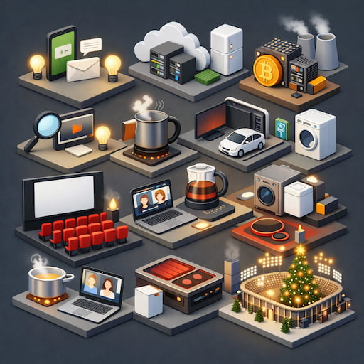 El coste energético de la vida digital / Imagen: GPTEl otro día estuvimos David y yo hablando en Cruce de Cables de RNE sobre lo que supone el coste energético de muchas de las acciones que llevamos a cabo en la VidaReal™. ¿Cómo se paga esa energía? ¿Cómo se compara con otras acciones cotidianas?