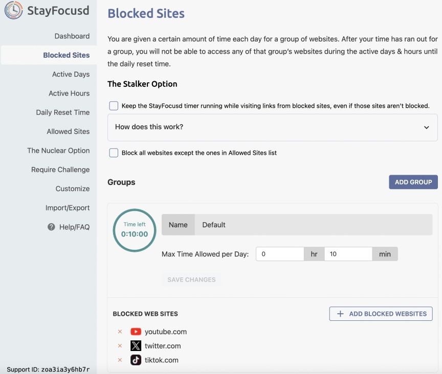 StayFocusd es una extensión capaz de bloquear páginas web que nos distraen durante nuestras horas de trabajo o estudio. De hecho, nos permite controlar de manera cronometrada cuándo y cuánto tiempo vamos a emplear en redes sociales, streaming o cualquier otra distracción. Funciona a base de «listas negras» y «listas blancas». En las negras, definimos qué sitios bloquearemos dentro de ciertos horarios o definiremos el máximo tiempo diario que podemos estar en ciertas webs.