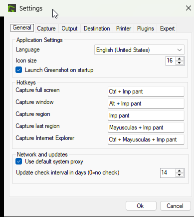 Opciones generales de Greenshot. Foto: Captura de Softzone.