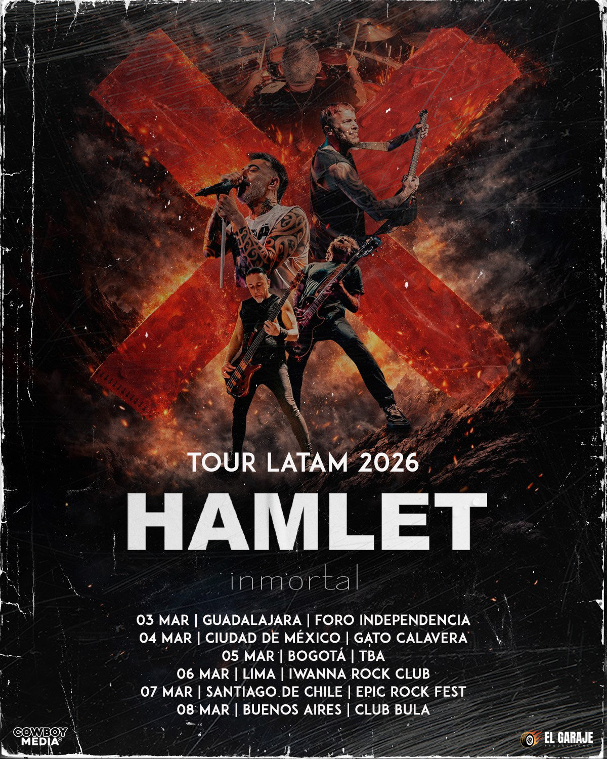 Los directos son donde los temas de HAMLET cobran vida, y regresan a Latinoamérica para celebrar con su gira “Inmortal”, recorriendo seis ciudades icónicas en seis noches consecutivas. Un tour intenso, cargado de energía, tal como solo ellos saben entregarla.