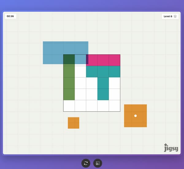 El juego tiene tres niveles de dificultad, con tableros a cual más grande y más y más piezas, una versión de aprendizaje («demo») y luego está el rompecabezas diario para quienes quieran hacerlo parte de su rutina. Entretenido resulta, desde luego.