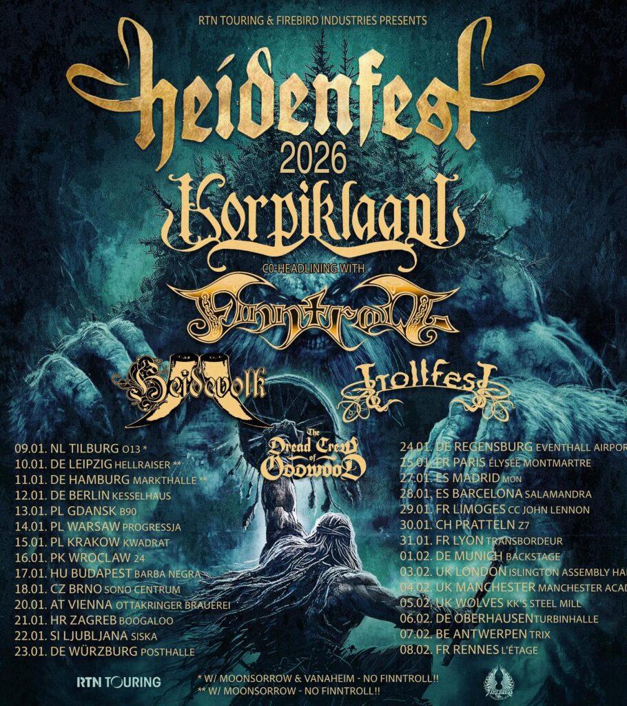 No se pierdan la oportunidad de ver a KORPIKLAANI en vivo en las últimas fechas de este año o en el HEIDENFEST 2026, junto a Finntroll, Heidevolk, Trollfest y The Dread Crew Of Oddwood. Ver todas las fechas a continuación: