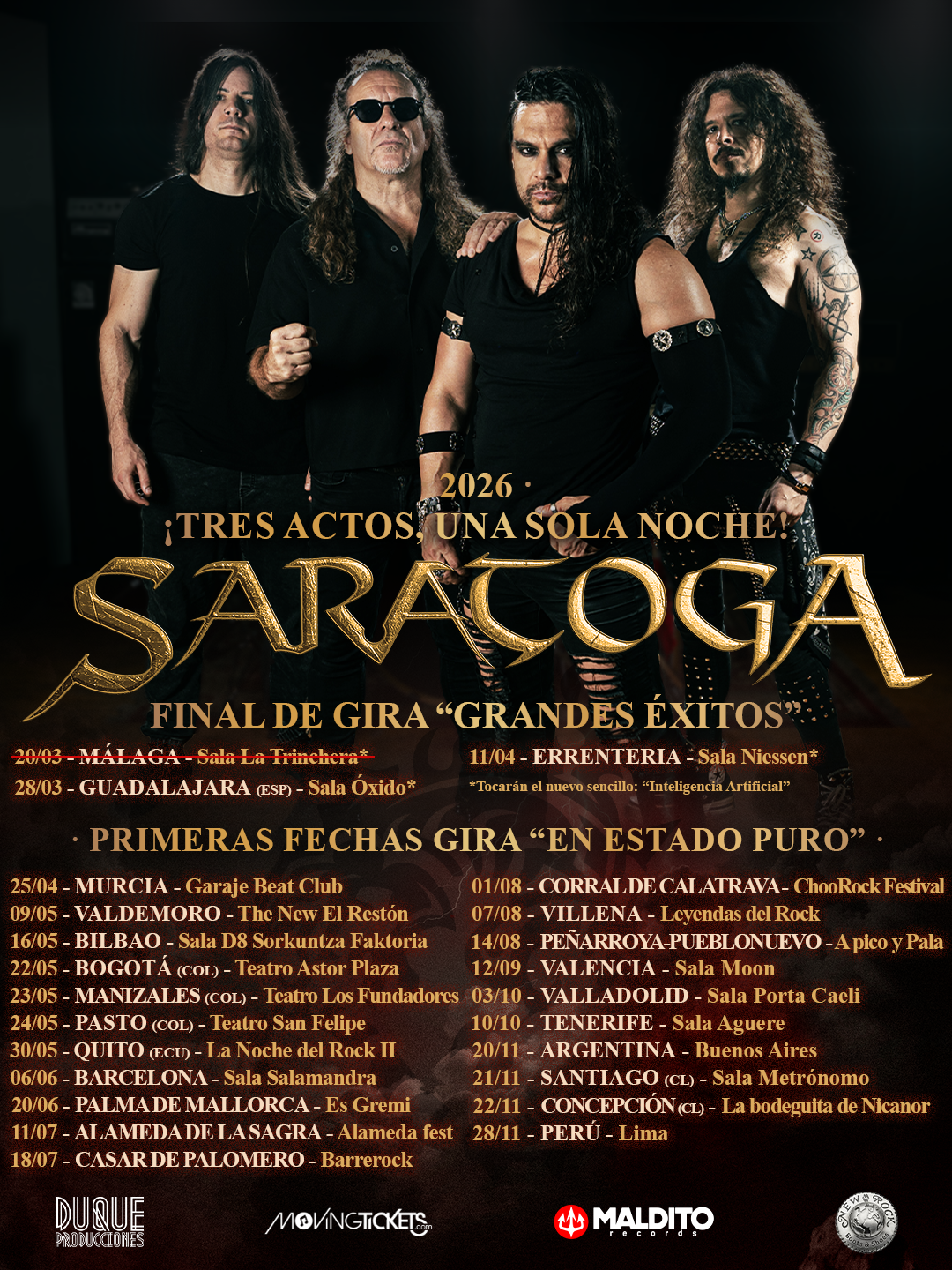 Próximas fechas de SARATOGA, en la gira de “En Estado Puro”.