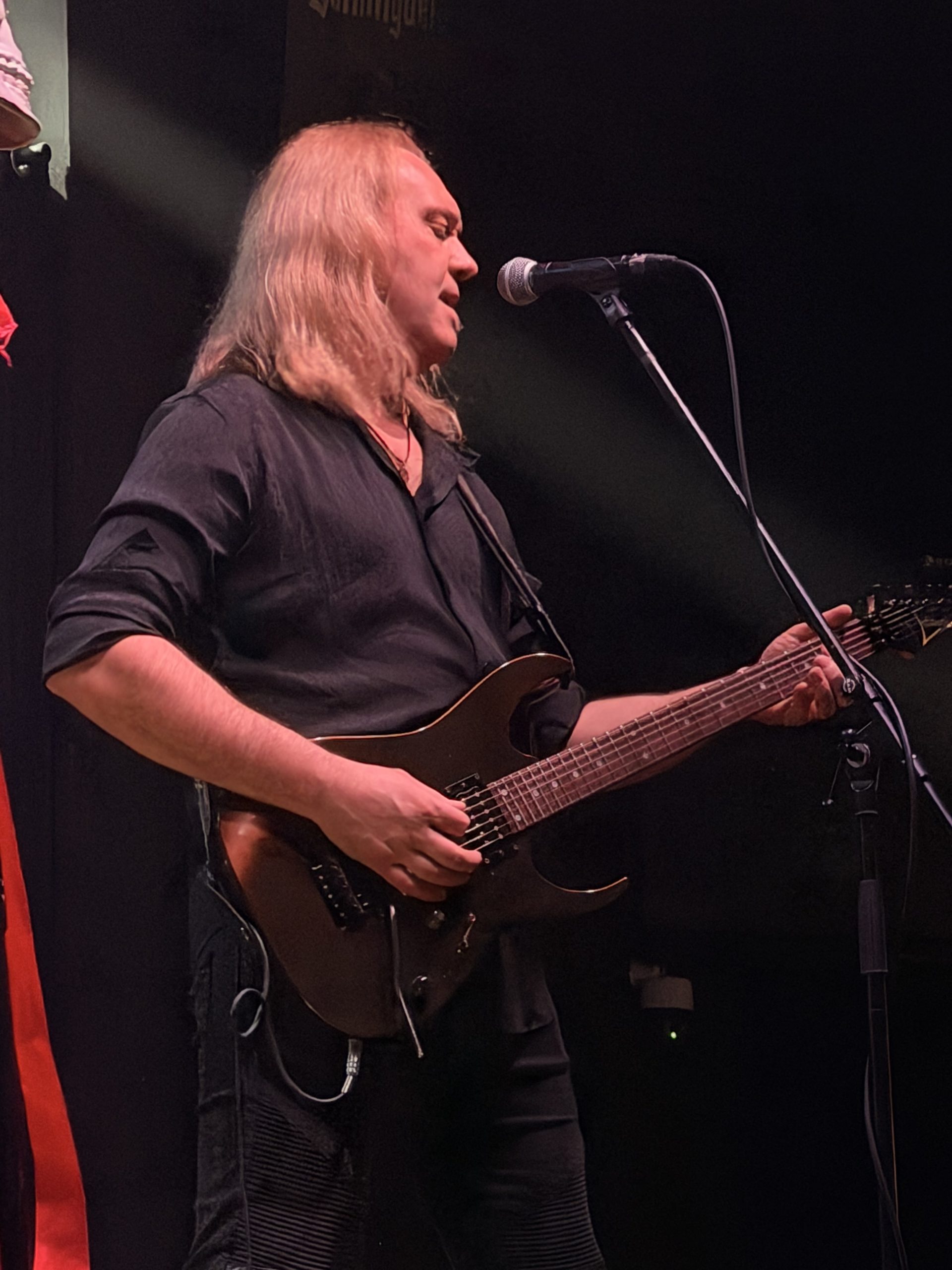 Aunque su cantante Jordi nos confesaba que estaba a base agua, porque al parecer no podía beber cerveza cuando cantaba, invitaba al resto con su nueva canción a pedir “Otra Cerveza” para pasar a presentarnos más canciones de su último redondo como “Cuestión de suerte”, “A Mal Tiempo Buena Cara” y especialmente, como nos indicó, la anecdótica mala leche que tuvieron para componer “Pollavieja”. Llegaba la hora del final del espectáculo con “Taberna de Rock and Roll” y las más laureada “Corazón de Metal” de su álbum “Grietas del Tiempo” con todo el positivismo y buen rollo de Jordi y sobre todo de Santi que estuvo muy activo durante todo el concierto, con la base rítmica de David y Salva y por supuesto con los solos de guitarra de Rubén, durante sus 45 minutos de show.
