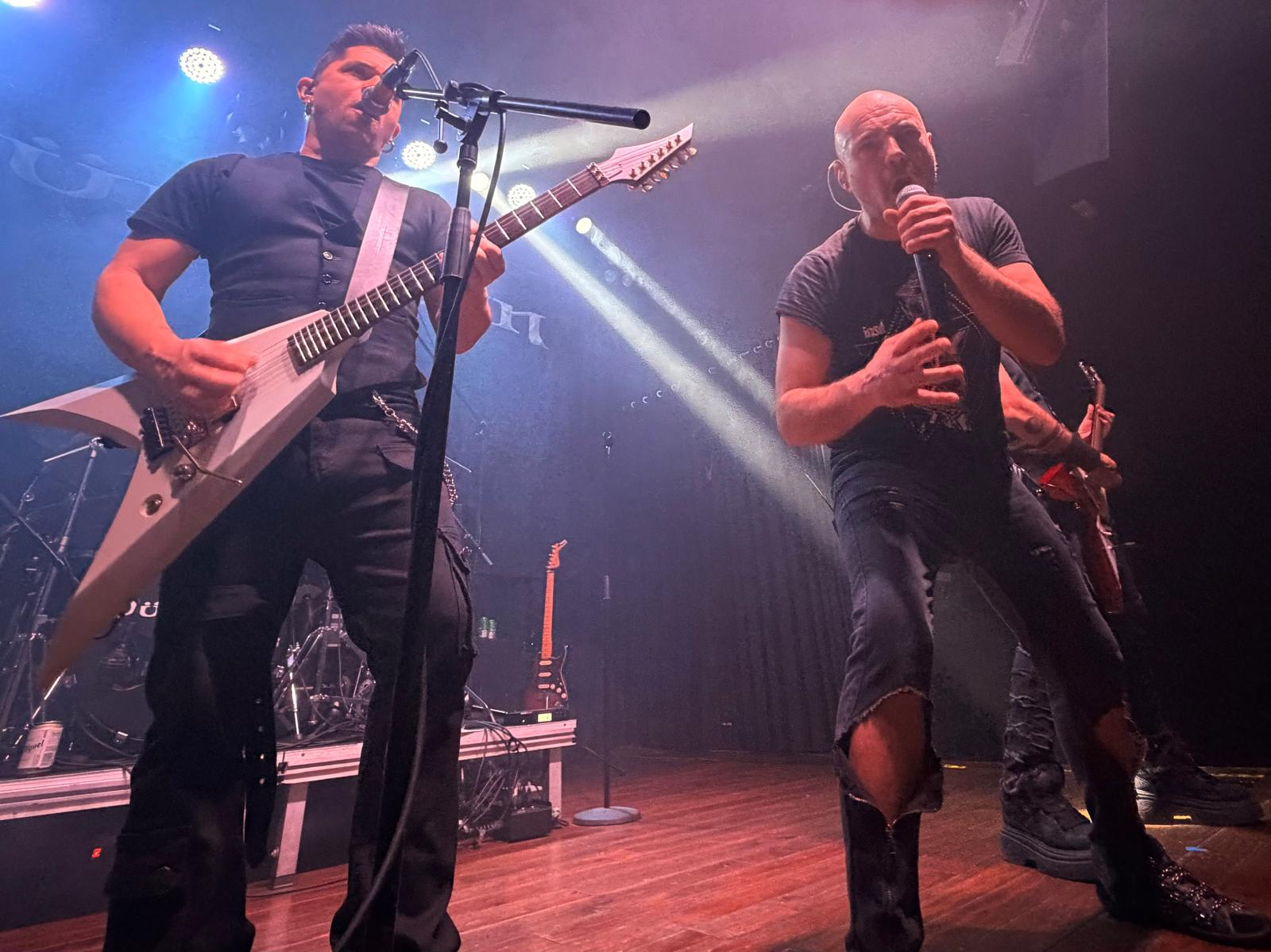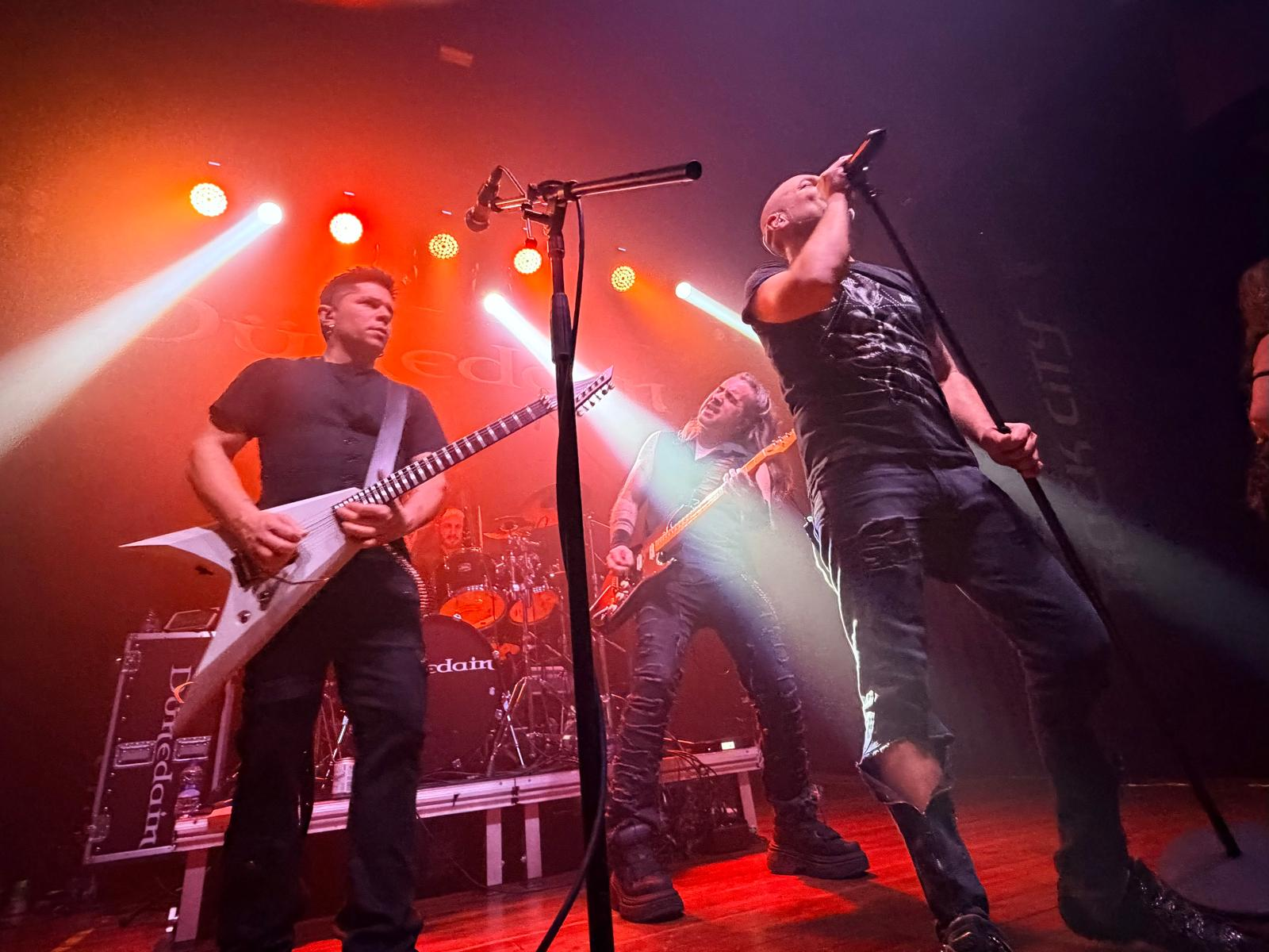 Tras poco más de 15 minutos ya estaba todo preparado comenzando a sonar la introducción del inicio de una noche de autentico heavy metal para que DÜNEDAIN apareciera sobre las tablas arrancando su repertorio para empezar a botar desde el primer minuto con “A un Paso del Cielo” para seguir haciendo vibrar al personal con su potente último sencillo “Oh Yeah” y abrir boca de lo que iba acontecer. Una breve parada con el fin de saludar tanto Tony Delgado como el cantante Carlos Sanz, que ya le sobraba la chaqueta de cuero, para seguir deleitándonos retrocediendo una década hasta su memorable trabajo “Pandemonium” con la fuerza de “Legado”, y la más saltada y coreada “Vuela” enlazando con el primer adelanto de su última entrega “Fénix” puso el listón alto con un ritmo y tempo sin cesar para que no decayera la fiesta con el impresionante duelo de voces de Tony y Carlos.