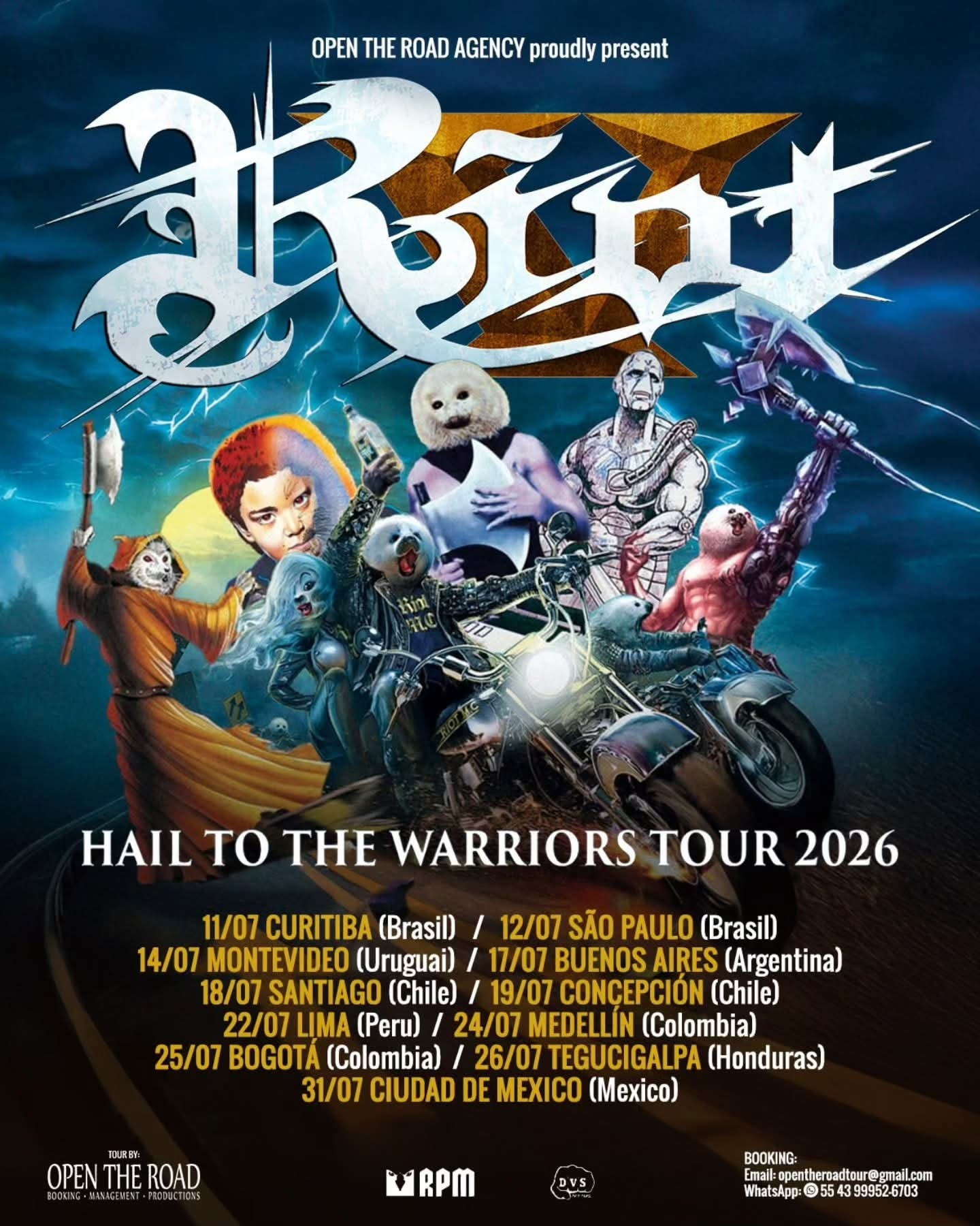 Riot V, una de las bandas más emblemáticas del heavy metal estadunidense, ha anunciado oficialmente su Hail to the Warriors Tour 2026 por Latinoamérica, una gira que recorrerá once ciudades en ocho países y que cerrará con una presentación en la Ciudad de México el 31 de julio.