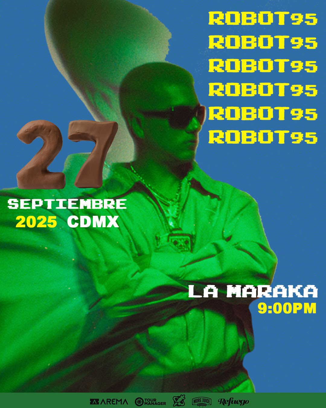 El rapero mexicano Robot95 se presentará en un show lleno de energía y estilo. Su repertorio incluirá éxitos de su más reciente EP, Cítrico. No te pierdas la oportunidad de disfrutar de su música en vivo, que promete ser una de las noches más destacadas del año.