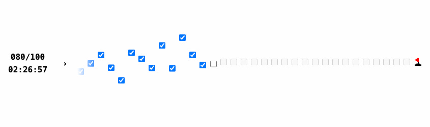 La carrera de Checkbox Race es una de habilidad y precisión con el ratón. Consiste en marcar cien casillas de verificación en el menor tiempo posible. El tiempo empieza con el primer clic. Aunque las casillas se van desplazando horizontalmente hacia el ratón con cada clic, el problema es que a medida que se avanza también divergen y aparecen más arriba o más abajo, haciendo que haya que apuntar con precisión.