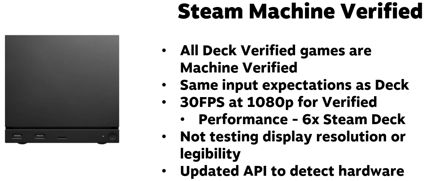 El establecimiento de 1080p y 30fps para la verificación de la Steam Machine puede tener diversas interpretaciones, como el no poner una barrera demasiado alta a unos desarrolladores que desde hace tiempo no destacan por sus labores de optimización en muchos casos. Por otro lado, también hay que contar la presencia de tecnologías como Unreal Engine 5, que están dejando al sector de los videojuegos para PC como algo reservado a ricos por los elevadísimos requisitos que tienen la mayoría de títulos que se construyen con él, cosa a la que se suma el limitado hardware de la propia Steam Machine 2.
